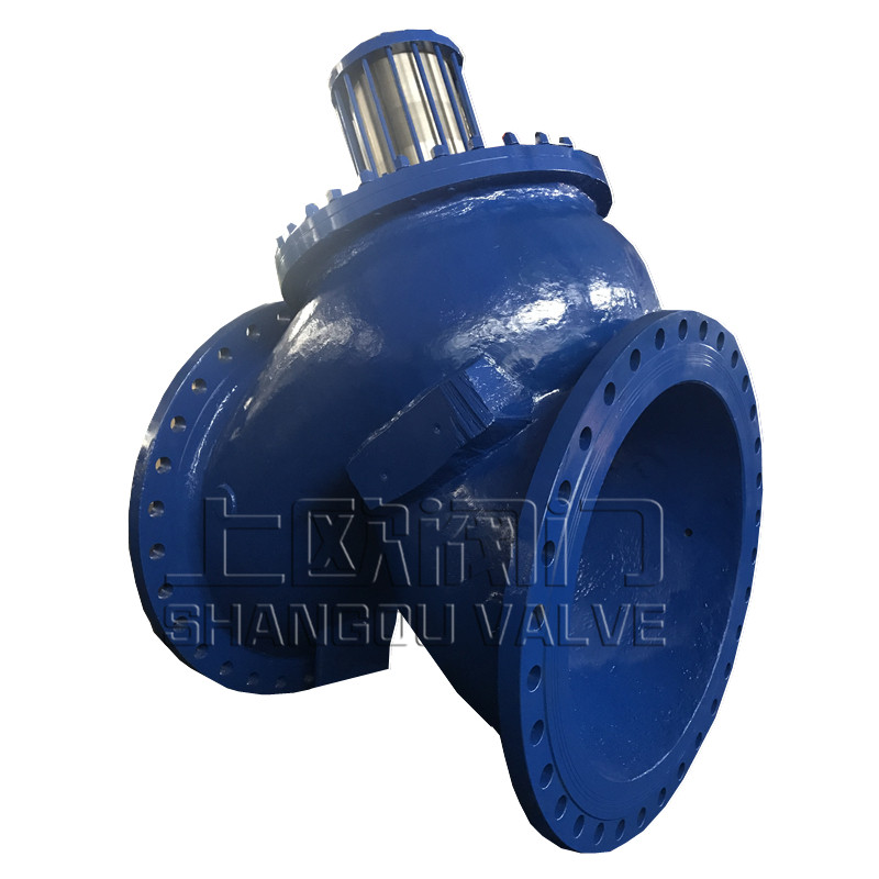 當水泵停機后。閥門中的水流速度降低,在接于近零時,主閥板在彈簧力和自身重力作用下快速關閉,而閥后的壓力水通過導管系統返回膜片(活塞)上腔,并推動固定閥桿上的小閥板緩慢關閉