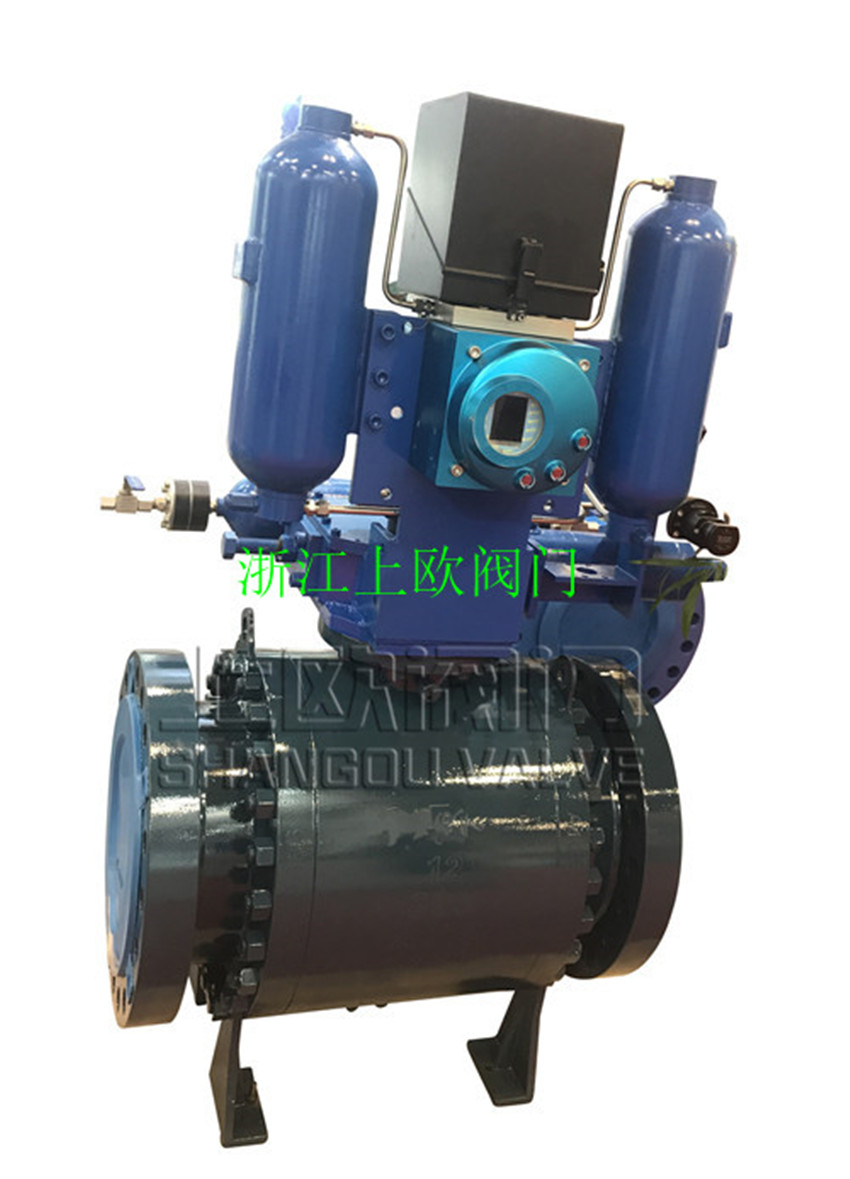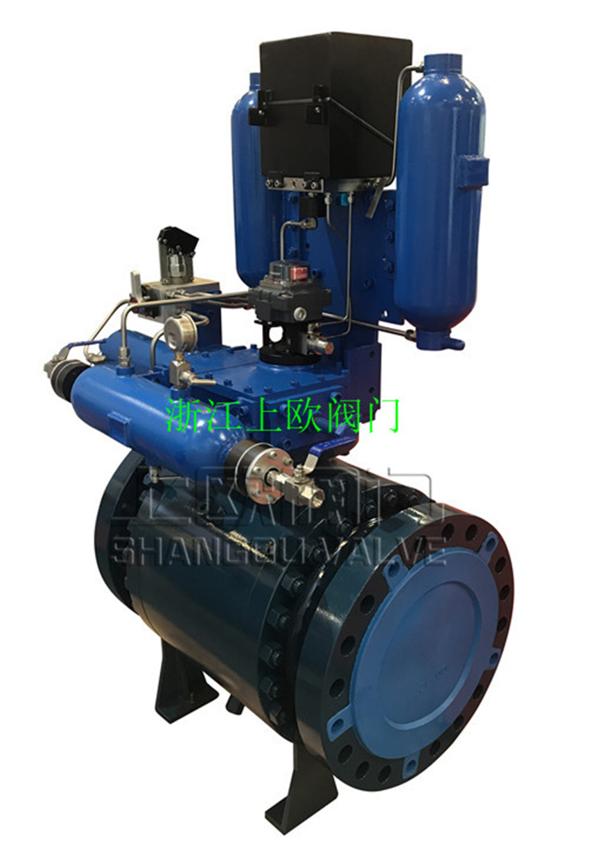 上歐閥門生產(chǎn)的氣液聯(lián)動(dòng)球閥由氣液聯(lián)動(dòng)執(zhí)行器和高壓球閥組成。氣液聯(lián)動(dòng)執(zhí)行機(jī)構(gòu)的動(dòng)力源直接取自主管線的高壓天然氣,天然氣經(jīng)過濾之后,直接進(jìn)入儲(chǔ)氣罐儲(chǔ)存。采用集成模塊、大流量、高壓設(shè)計(jì)技術(shù),使較少的控制元件承受高壓,延長(zhǎng)密封件的壽命、減少配管、減少系統(tǒng)泄漏點(diǎn)從而提高了設(shè)備的整體安全性。 液壓系統(tǒng)具有傳動(dòng)剛性強(qiáng)、不易壓縮、傳動(dòng)平穩(wěn)、易于密封等優(yōu)點(diǎn)。氣體具有壓縮比大的優(yōu)點(diǎn)。氣液聯(lián)動(dòng)執(zhí)行機(jī)構(gòu)通過氣液傳動(dòng)方式的轉(zhuǎn)換,將氣、液二者優(yōu)點(diǎn)得到完美結(jié)合。高壓氣體經(jīng)過控制系統(tǒng)進(jìn)入氣液罐轉(zhuǎn)換,罐體內(nèi)等壓的液壓油被壓入相應(yīng)的液壓活塞缸,同時(shí)液壓活塞缸液壓油流回到另一個(gè)氣液罐內(nèi),活塞動(dòng)作帶動(dòng)執(zhí)行機(jī)構(gòu)驅(qū)動(dòng)閥門實(shí)現(xiàn)平穩(wěn)的開或關(guān)。 氣液聯(lián)動(dòng)執(zhí)行機(jī)構(gòu)工作性能穩(wěn)定、動(dòng)作可靠。通過調(diào)節(jié)液壓油的流量可調(diào)節(jié)執(zhí)行機(jī)構(gòu)動(dòng)作的全行程時(shí)間。